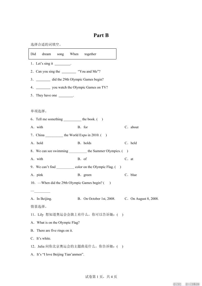 闽教版英语六年级上册Unit1PartB练习卷admin3个月前发布关注私信033618 ——预览已结束,还剩5页未读——开通会员后可免费下载高清完整文档 课程下载: 闽教版英语六年级上册Unit1PartB练习卷此内容为付费阅读,请付费后查看¥3黄金会员免费钻石会员免费立即购买您当前未登录!建议登陆后购买,可保存购买订单付费阅读© 版权声明文章版权归作者所有,未经允许请勿转载。THE END学习 喜欢就支持一下吧点赞618 分享QQ空间微博QQ好友海报分享复制链接收藏